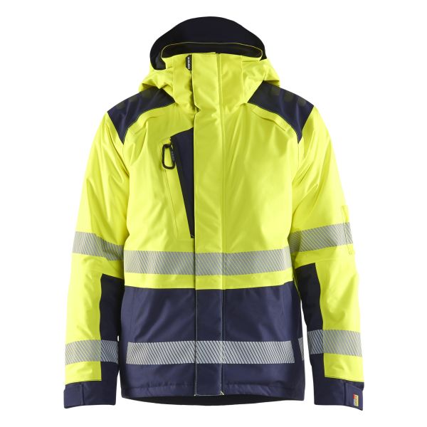 Luokan 3 Highvis 4455 -huomiotalvitakki, joka tarjoaa lisänäkyvyyttä kun sitä eniten tarvitaan. Takissa on tikkivuori ja se on tuulen- ja vedenpitävä teipatuilla saumoilla. Takin istuvuus on mukava ja tilava. Säätömahdollisuuksilla. Edessä ja hihoissa on vahvikkeet. Selän puolella joustopaneeli, joka lisää käyttömukavuutta. Huppu on irrotettava ja säädettävissä kypärää ja kuulosuojaimia varten.