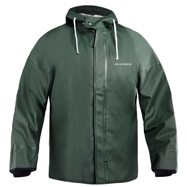 Grundéns Brigg 44 on ammattikalastajille tarkoitettu sadeparkatakki, joka on EN343-sertifioitu. 100 % vedenpitävä paksulla PFAS-vapaalla 530 g/m2 PVC-pinnoitteella, kangasmateriaali puuvilla-polymateriaali. Pitää sinut kuivana ja mukavana vaikeimmissakin olosuhteissa. Hihan sisällä neopreenimansetti, joka on suunniteltu pitämään veden poissa. Takissa on kokopitkä etuvetoketju (YKK-vetoketju Marine Grade) ja myrskyläpät ruostumattomasta teräksestä valmistetuilla soljilla. Vahvistetut neopreenihihansuut pitävät veden poissa hihansuista. Sertifioitu ISO9001 ja valmistettu Grundénin tehtaalla Portugalissa.